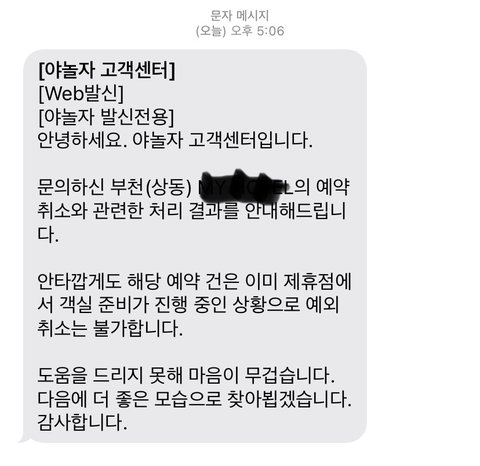 “호텔 측에 진위 여부를 확인 후 환불 가능한지 여쭤보겠지만 호텔 측에서 예약자를 위해 객실을 준비 중이었다고 얘기하면 규정상 환불 불가능하다”라고 말하더라고요…