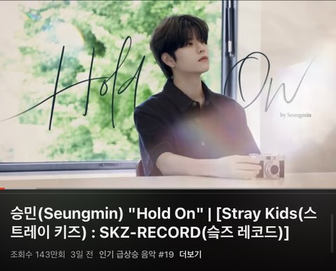 승민이 hold on 인기급상승음악 순위 계속 올라!!