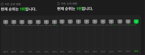 혹시 모를 추반용!! 4세대 여돌 콘크리트라 한달내내 1위 아님 2위 유지한것도 꾹특한데 어제는 하루종일 탑백 1위 유지함ㅋㅋㅋ 이것만해도 기특해