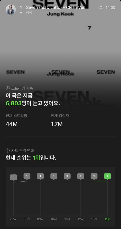19버전은 팬들이 스밍이나 총공도 안하는데 혼자 차트인함.... 그만큼 대중들이 찾아서 들었다는거겠지 ㄹㅇ 세븐이 흥했다라는 증거라 조카 좋지만 그 이용자수 클린에 붙었음 진작했을듯ㅋㅋㅋㅋㅠ