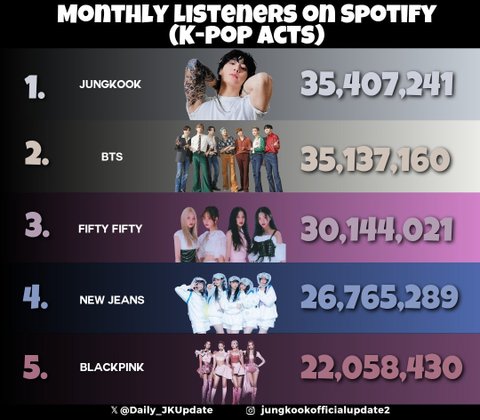 정국 스포티 월 청취자수 블핑도 제치더니..