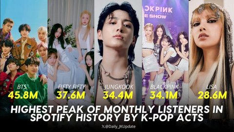 케이팝 스포티파이 월 청취자 수 피크도 역대 3위래