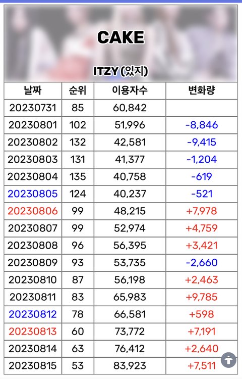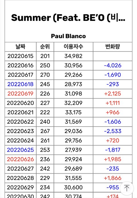 85위로 진입해서 차트아웃했다가 다시 들어와서 50위권까지 올라옴. 20~30위 정도까지 갈듯?