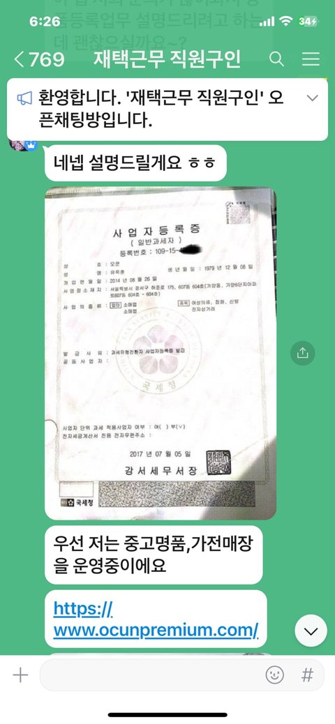 사업자등록증과 매장 사이트까지 전부 치밀해서 진짜인줄 알고 연락드린 당일날부터 알바를 시작하게됐어요