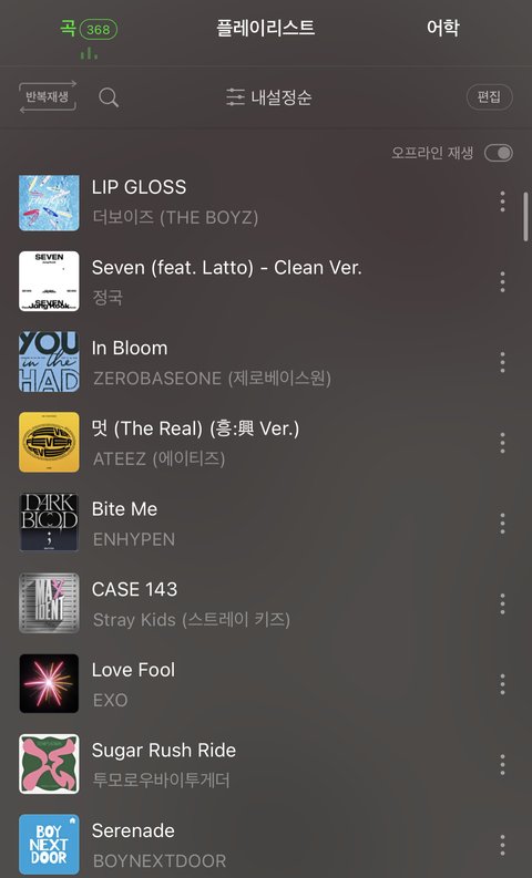 여기서 더 추천해보자면 투바투 네버랜드 어쩌구 그거랑 스키즈 탑라인이랑 덥즈 ddd 트레저 bomb 조음 ㅎㅎㅎㅎ