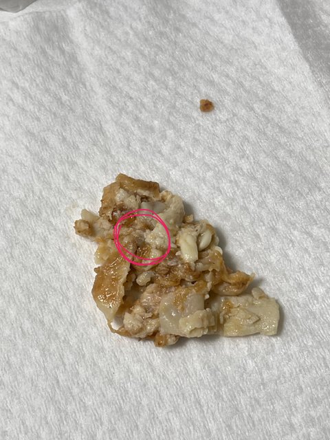 8월 16일 오전 12시30분에 가마XX닭에서 한 마리 통닭을 배달앱으로 주문하였고, 마지막으로 아껴 먹으려던 닭껍질을 먹었는데 와그작 하는 소리가 나 딱딱한 이물질들을 골라 뱉어보니 여러개의 돌이 나왔습니다. 여러개의 돌이 나온 후 이쯤이면 돌이 다 나왔겠지 하고 씹던 음식물을 뱉었습니다. 추후 확인해보니 이가 살짝 나가있었습니다.