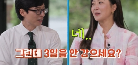 "집에 있을 때는 한 3~4일 머리를 안 감거든요"