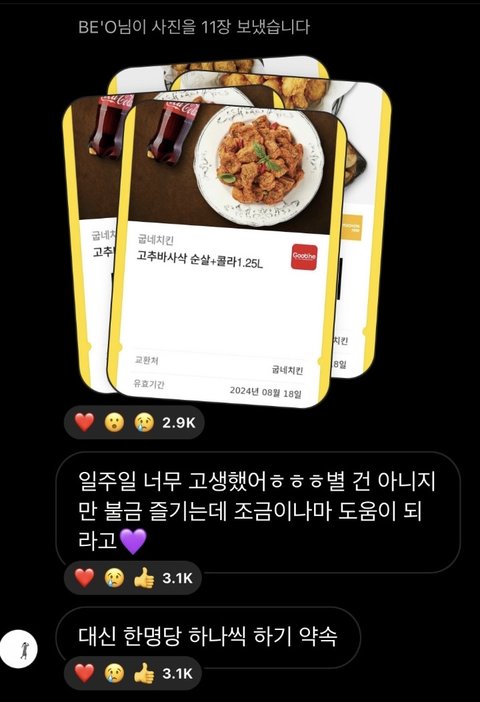 비오의 인스타공지방인데 매일매일 예쁜말 한가득 해주고 사진, 녹음 보내쥼 게다가 오늘은 팬들한체 깊티 44장 쏨..