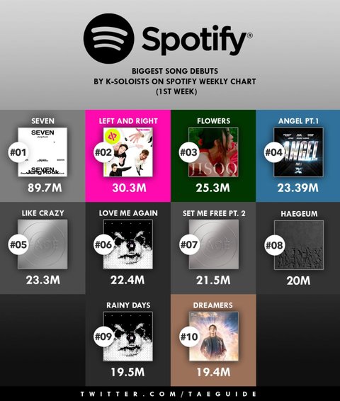 2023 kpop 솔로 스포티파이 첫주 스밍 순위