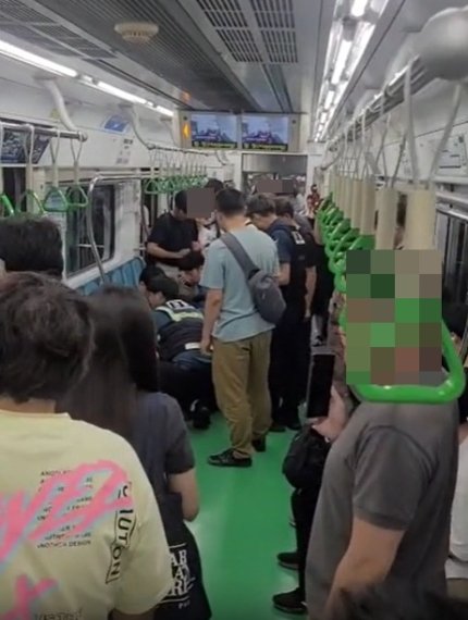 홍대와 1정거장 합정역 지나는 지하철 2호선 열차 안에서 흉기 난동