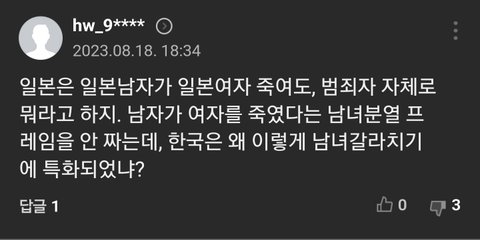 살인예고 구속 20명중 19명이 남성이라는 기사 댓글 ㅋㅋ 남성에게 불리하면 갈라치기라고 시전 하지만 여성범죄자 기사엔 역시 한녀라며 싸잡아 욕하는 종특이 있지요