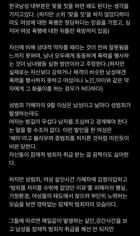 이 글에 논리적으로 아니다말할수 있는 한국남성들은 몇이나 될까