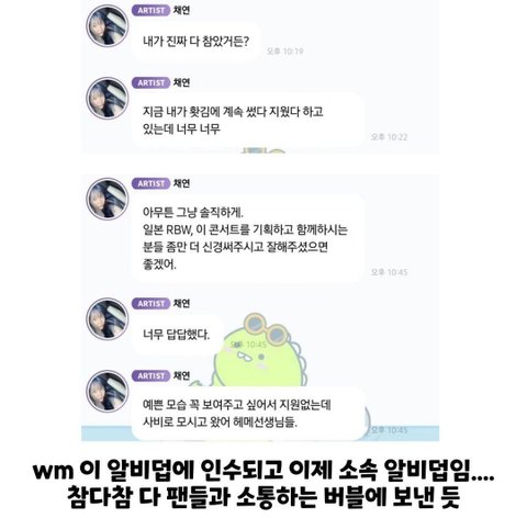 저건 회사가 잘못한 건 맞지만 왜 팬들한테 말하는 거지...? 팬들한테 말해줘도 팬들이 무슨 힘이 있다고..
