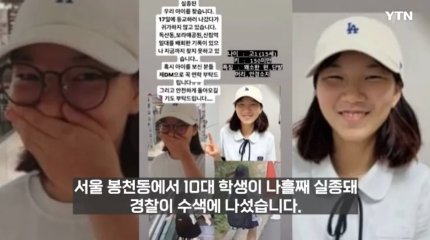 20일 YTN에 따르면 서울 관악경찰서는 지난 18일 서울 봉천동에서 15살 김지혜양이 실종됐다는 가족의 신고를 접수했다.