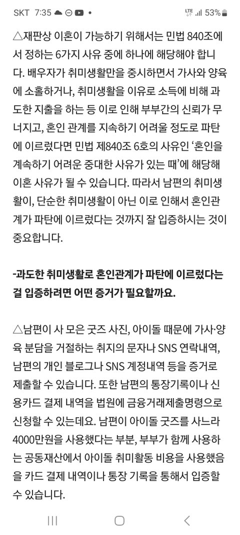 아이돌 굿즈에 4000만원 쓴 남편, 이혼 사유 될까요
