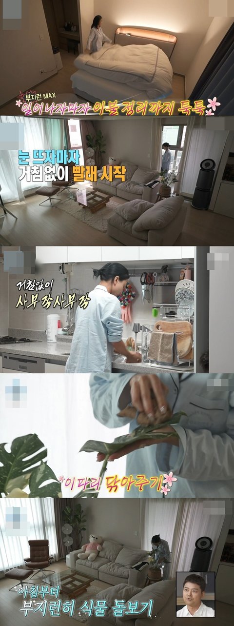 아침에 일어나자마자 칼같이 이불 정리하고 환기 시키고 빨래 돌리고 식물 가꾸기