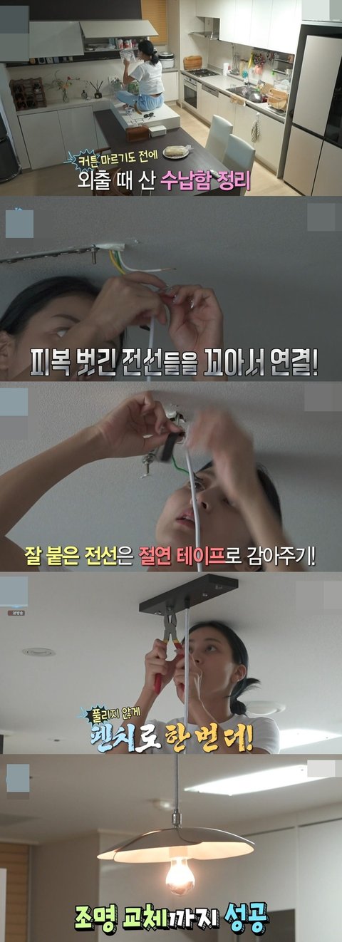 수납 정리와 펜치로 직접 조명 설치까지 (빨리하려고 전동 드릴 갖고 오는 건 생략ㅋㅋ)