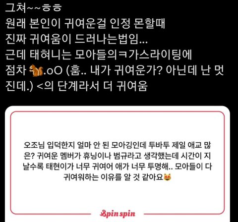 나는 상남자지! 이러는데 체구는 제일 작고 귀엽게 생겨가지구 더 귀여워ㅋㅋㅋㅋㅋㅠㅠㅠㅠ텬이는 알까