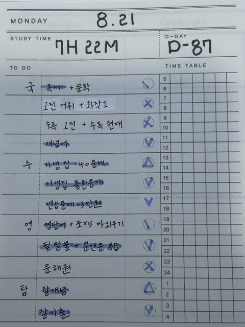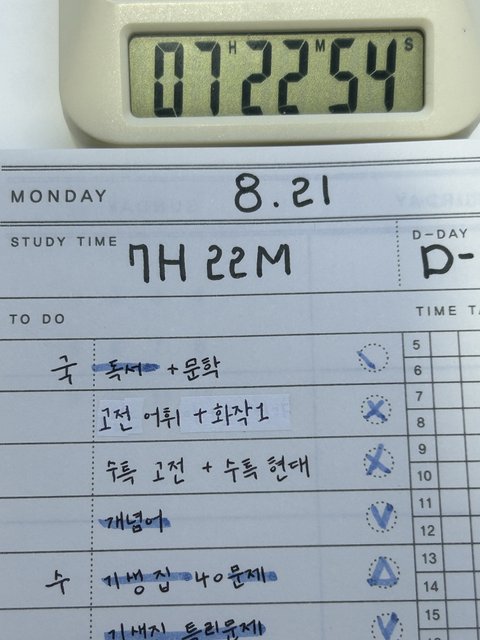 근데 자고 일어나니까 공부 효율 미쳤음 원래 1시간 단위로 끊어주는데 2시간 쭈욱 집중한 건 공부하기로 한 이후로 처음 겪어봄 그래도 앞으론 졸음을 필사적으로 참아야만 함