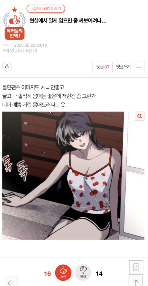 걍 그림이라그런가 ㄹㅇ아무생각 없는데 다들 ㅈㄴ 싸보인다고 난리길래 내가 생각하는 현실판은 이느낌이였음