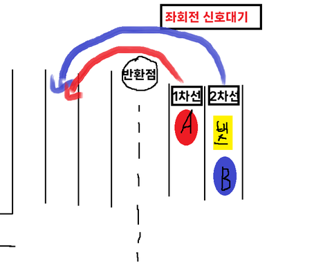 내가 알기로 좌회전 신호가 떨어지면 밑에 처럼 회전해야한다고 생각함