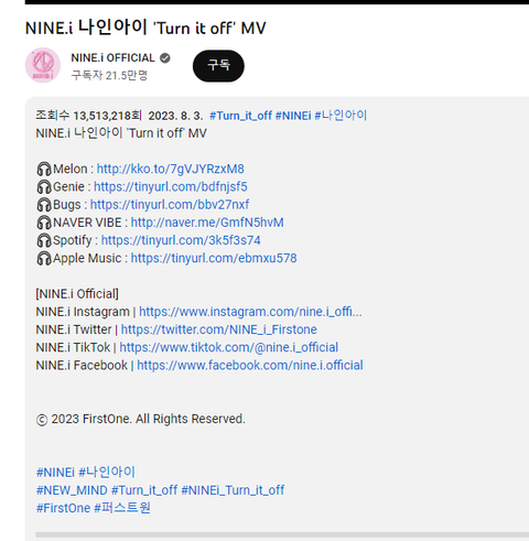 유튜브 전 세계 뮤직비디오 인기 65위 화제의 남돌 나인아이@