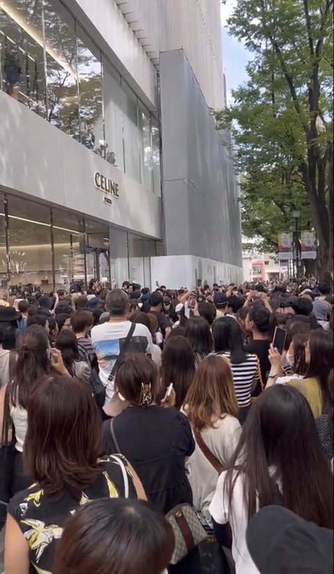 셀린느매장 양쪽도로변에서부터 아미들 꽉차있고 차로 좀가서 대도로변 나오기까지 줄 쫙 서있음…