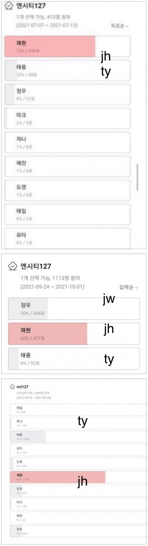 태용악개가 재현 미워해서 견제해봤자 이게 여초 비주얼투표 현실인데.. 댓글에 쓰니달고 바로 재현까놓은거보니 악개네 힘내