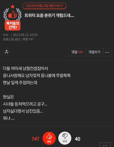 트위터 분위기 이거 ㄹㅇ 느낀 게