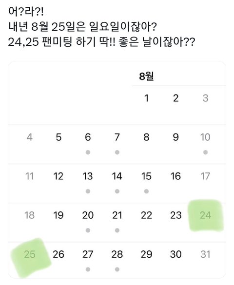 내년은 25일 일요일이래 2년 연속으로 데뷔일에 자꾸 딴 스케 있었는데 내년엔 당.일. 팬미팅 미리 감사합니다