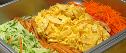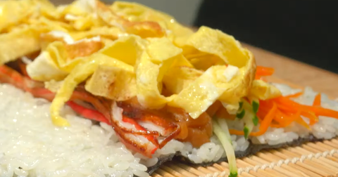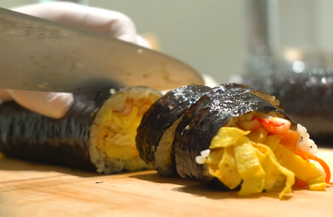 오이, 당근, 맛살, 유부, 계란 넣은 김밥 완성