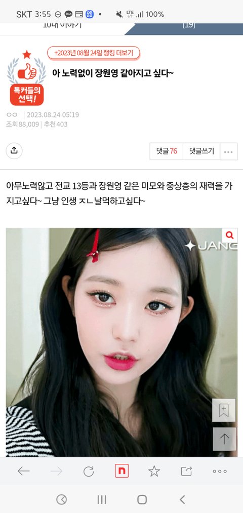 장원영도 카메라 꺼지면 우리랑 똑같은 인간이고 매일 잠도 제대로 못자고 풀메 몇시간씩 받고, 노래, 안부 연습 하루에 몇시간씩 받는 게 얼마나 힘든일인데.