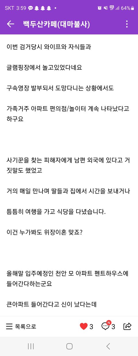 결국 사기꾼은 도망다니다가 위장이혼 한 와이프랑 캠핑장을 가다가 잡혔고 현재는 송치되어 법원에서 심판을 기다리고 있습니다.