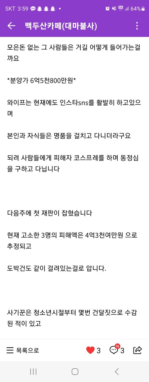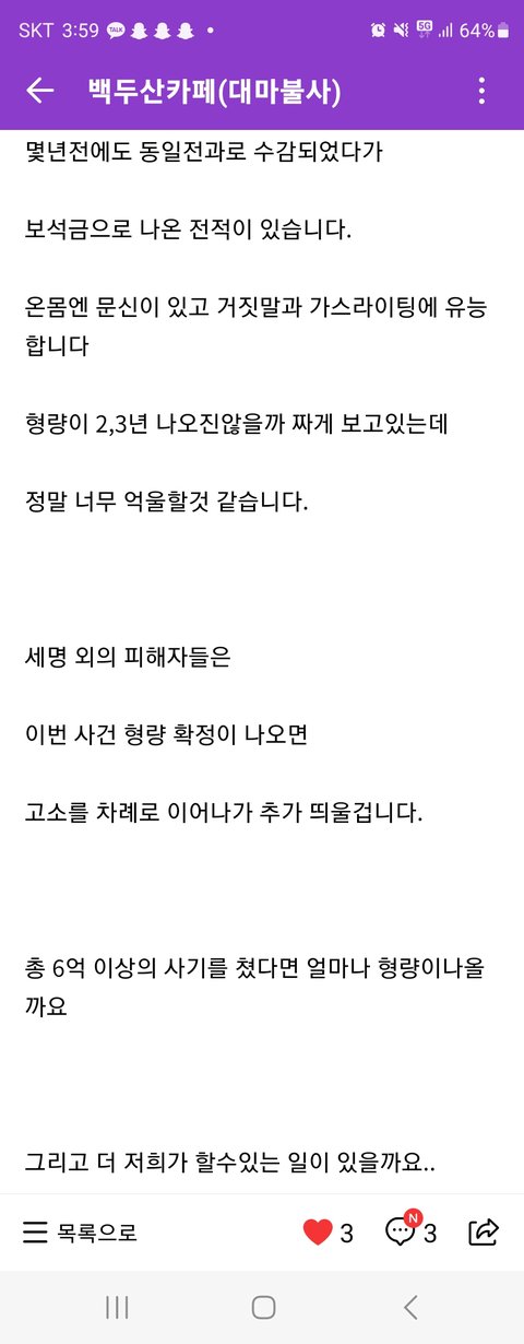 저말고 다른피해자는 돌려막기 폰지수법에 당하여 현재 가정도 몸도 마음도 힘든 상태입니다