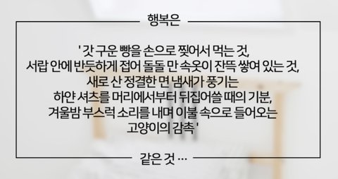그 소리들을 찾는 시간들이 내겐 소확행인 것 같아!