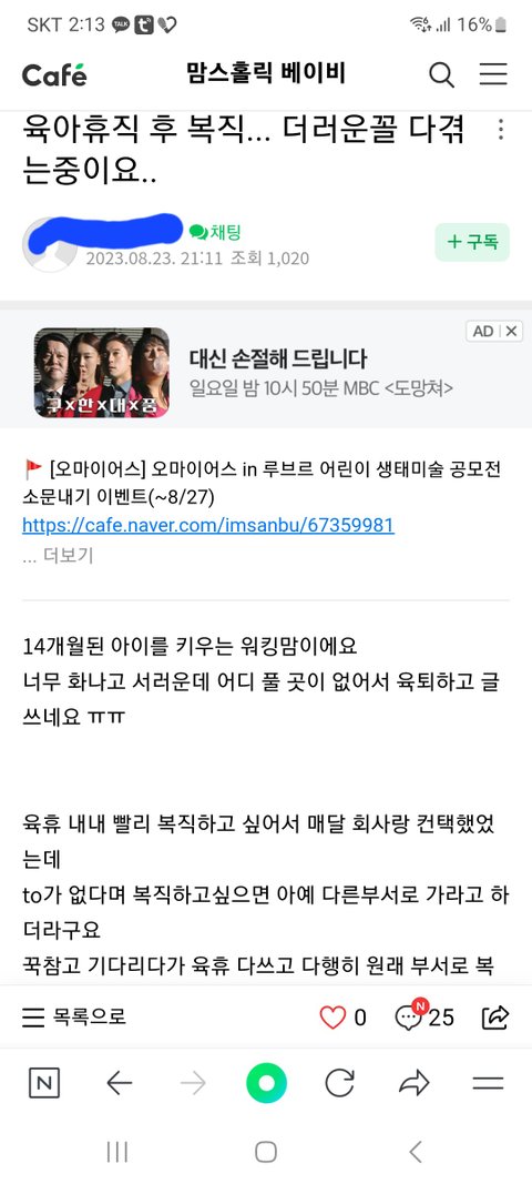 글삭하고 튈줄알았음 대형 맘까페 ㅁㅅㅎㄹ 에