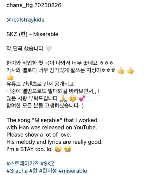 + chAN's (TAKE A CHANCE) 님 코멘트