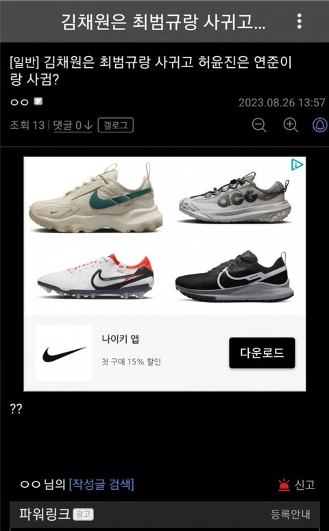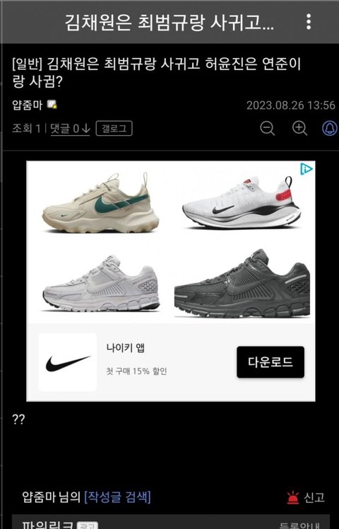 아이디 잘못로그인해서 본계정으로 글쓰고 삭제한다음에 부계정으로 뉴진스 르세라핌 까는 아이브팬갤 유저