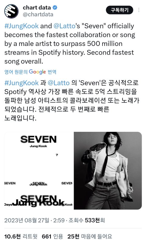 정국은 이런 글이 올라올수 밖에 없는게 지금 전세계 남성 아티스트 1위 기록 찍는 중이라 케이팝 기록이 아니라 월드레코드임 팬들이 주접을 100번 떨어도 이해감