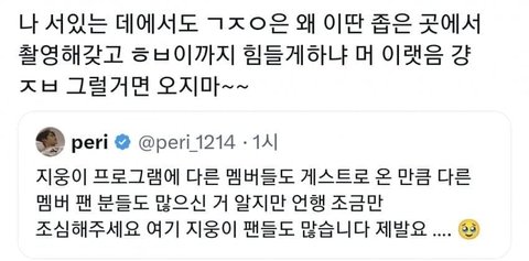 근데 그런 모습 가식이라도 안 보여주면 처 맞는게 아이돌임 어차피 유사는 자기 만족이지 진지하게 받아들이는 팬 있음?