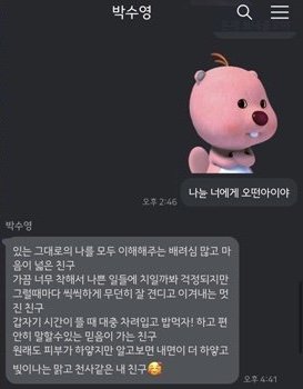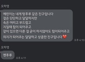 예린한테 조이 하영이 카톡 메세지 남긴거