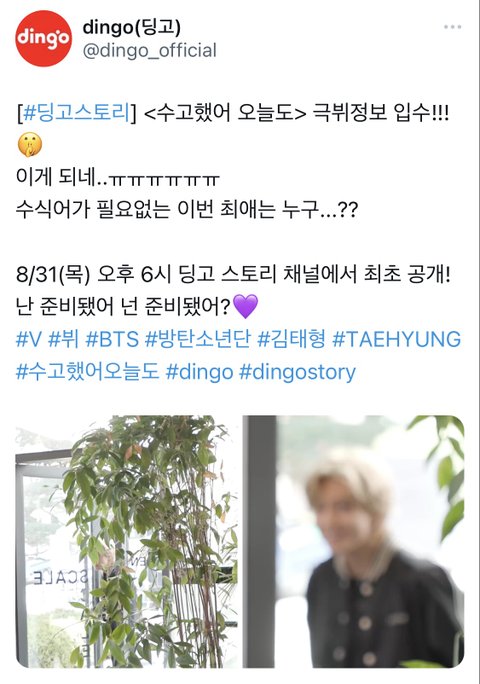 딩고스토리에 방탄 뷔라니...누가 나올까?