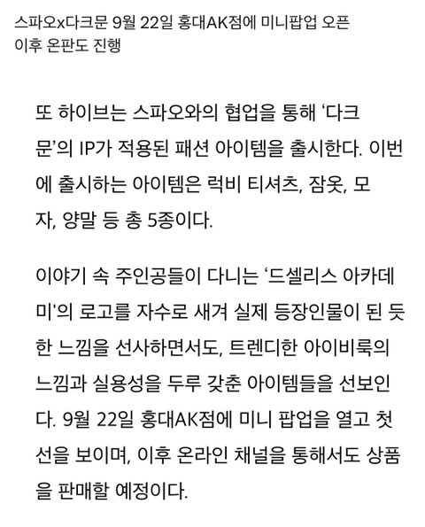 하이브에서 만든 엔하이픈 세계관 웹툰 다크문이 팬들이랑 웹툰보는 일반인 사이에서 반응이 좋아서 그런지 콜라보 엄청함