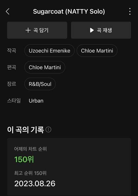 솔로곡 슈가코트가 꾸준히 반응 와서 차트 150위 찍음