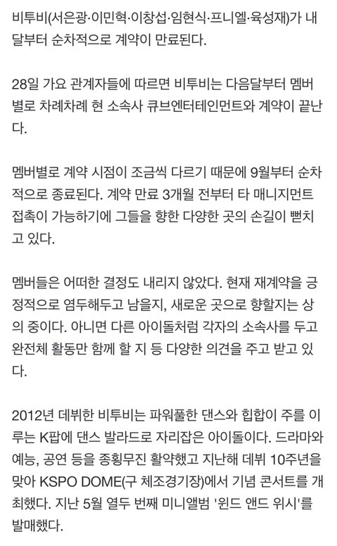 비투비 큐브 재계약 올라왔다