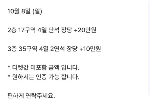 티켓값 미포함 적혀있는데 아니라고 번장 검색해보라네 ㅋㅋㅋ