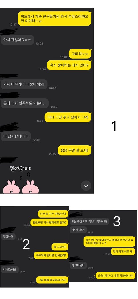 전 현재 중2이고 잘생겨서 번호 딴 1학년이 있는데 연락은 이렇게 3번 정도 했고 제가 과자 주니까 1학년 여자애들이 얘 자리 쪽으로 몰렸나봐요 근데 얘가 안돼 이거 나만 먹을거야 이랬다는데 가능성 있나요?ㅠㅠ (사진은 1개 밖에 안 된다길래 이렇게 했어요ㅠㅠ)