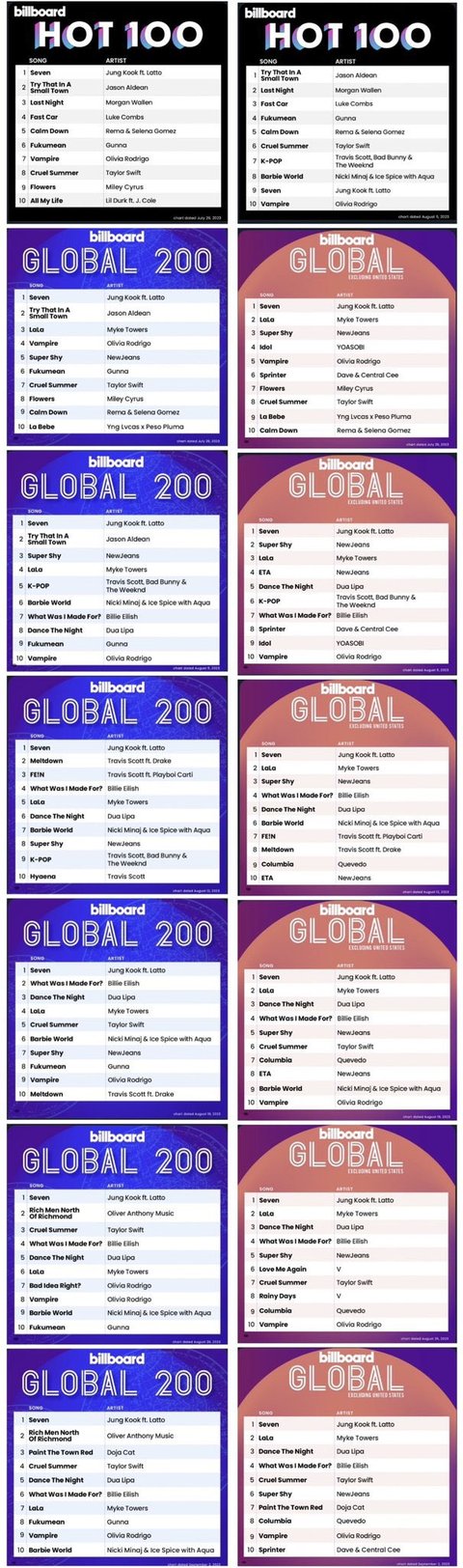 글로벌200+글로벌(미국제외) 차트 둘 다 1위 올해 글로벌200에서 6주 연속 1위한 건 마일리 flowers에 이어 두 번째래