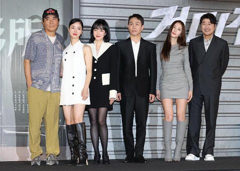 영화 '거미집' 제작보고회가 29일 진행됐다. 이 날 김지운 감독을 비롯한 배우 송강호, 임수정, 오정세, 전여빈, 정수정이 참석했다.
