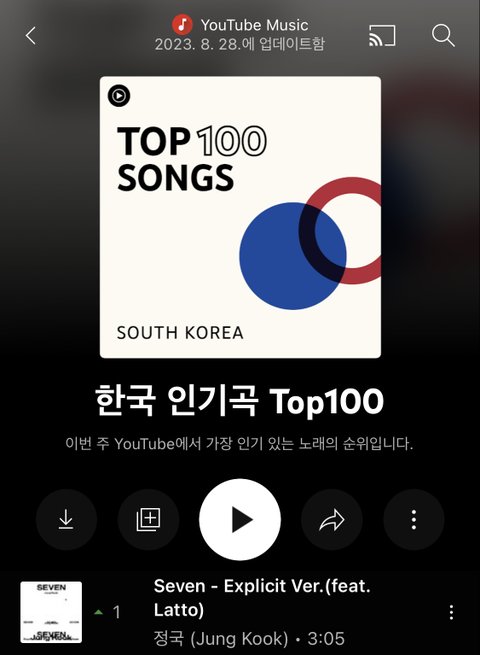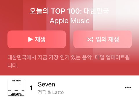 유튭뮤직 주간차트도 다시 1위 찍고 방금 또 앺뮤 국내차트도 1위 찍음 이제 멜론 가자 +) 앺뮤 코리아에서 1위 찍은 건 첨이래 계속 2~3위였음